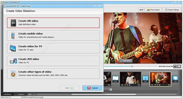 完成工作的创意部分后,转到“创建”选项卡,然后将项目导出到视频。SmartSHOW 3D提供30多种视频格式,包括用于Facebook,YouTube,电视甚至DVD刻录的幻灯片。有一个有用的分步向导可用于创建视频-它会指导您并给出提示以确保完美的质量输出。