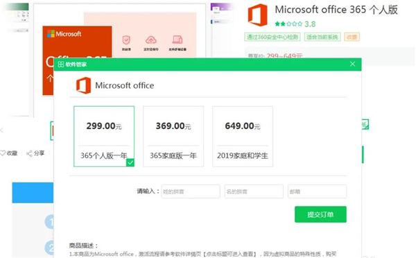 3.在价格方面,家庭版的office365一年约600元,个人版是400元一年,
