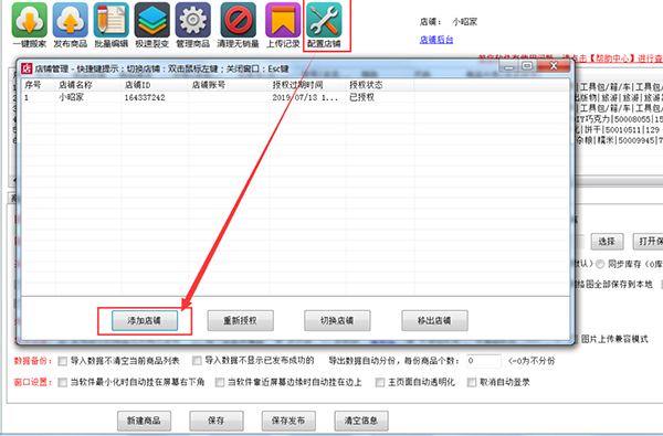 1.首先,打开登录软件,登录成功,操作店铺授权。点击配置店铺-添加店铺,弹出新的窗口,按照提示填写信息授权信息即可。