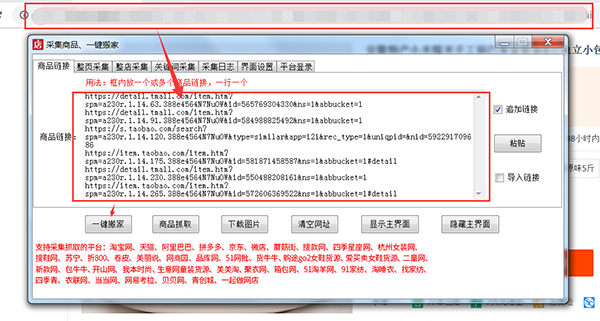 -单个的商品、对个的商品进行搬家,而且一键的采集功能支持,图片的下载功能支持