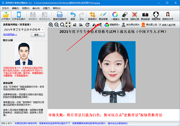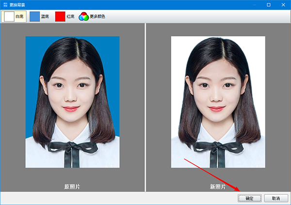 3.当前背景为蓝色,照片审核要求为白色,点击“更换背景”: