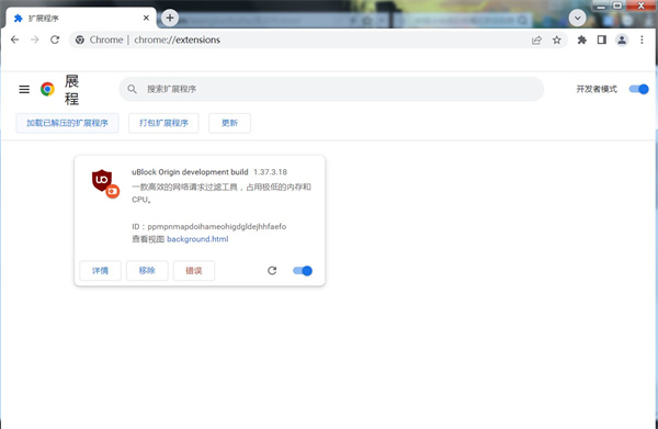2.将解压出来的扩展文件“uBlock0.chromium”整个文件夹拖动至浏览器。