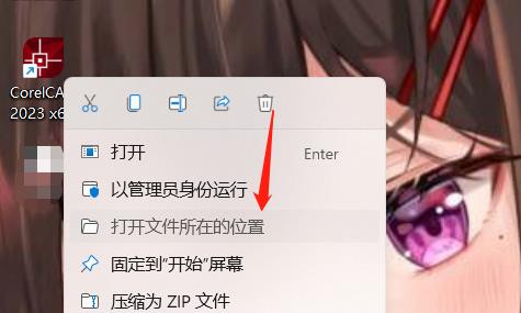 7.在桌面上找到程序快捷键,鼠标右击打开文件所在的位置,默认位置为【C:\Program Files\Corel\CorelCAD 2023\】;