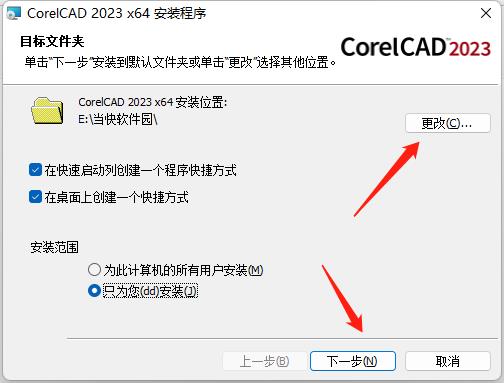 4.稍后将会进入安装程序,可点击更改选择其他位置,点击下一步;
